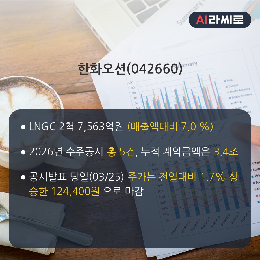 오늘 장중 이니텍(053350), 스피어(347700), 동부건설(005960)외 8곳의 기업에서 신규 판매ㆍ공급계약 공시를 발표했다.◆한화오션(042660)- LNGC 2 [라씨로 2026/03/25 15:35]