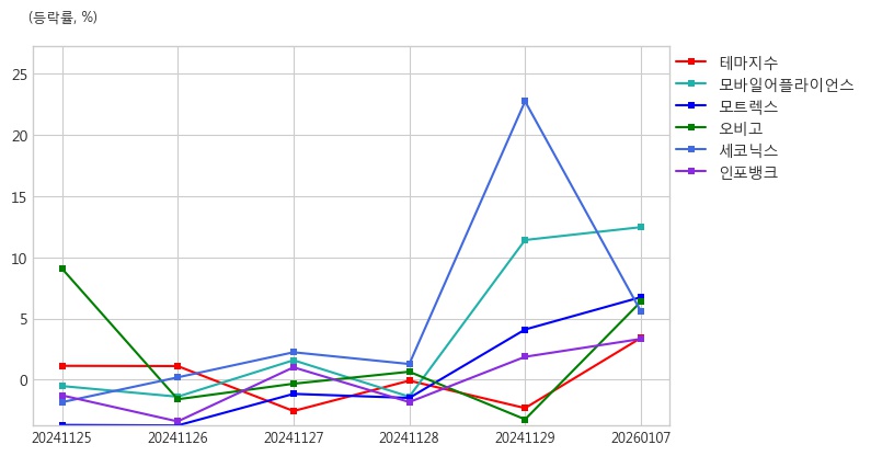 <그래프> 스마트카 테마 주요 종목 등락률