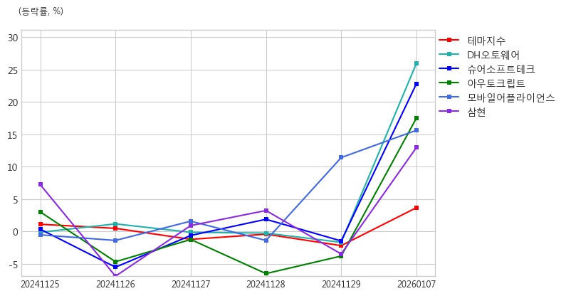 <그래프> 자율주행차 테마 주요 종목 등락률