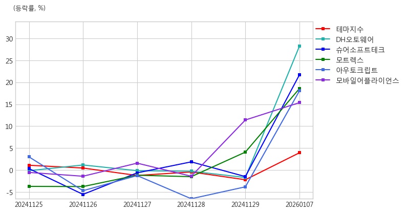 <그래프> 자율주행차 테마 주요 종목 등락률