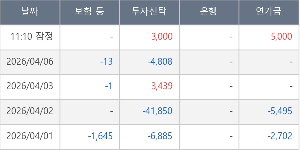 [표] 주요 기관별 순매매량 (단위 주)