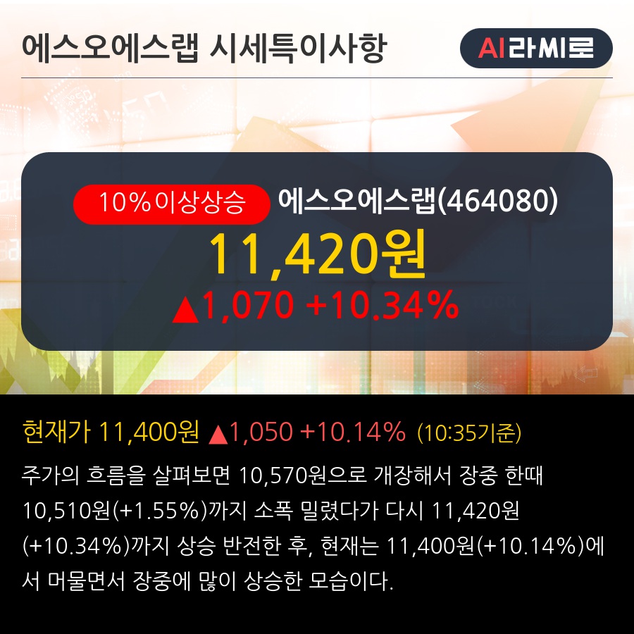 '에스오에스랩' 10% 이상 상승, 외국인 3일 연속 순매수(1.9만주)