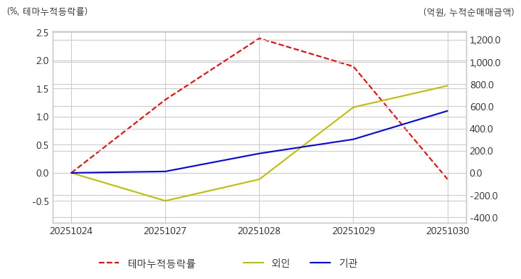 ◆전선 테마 강한 상승세로 반전 +3.30%, 최근 5일 기관/외인 1346.46억원 사모아