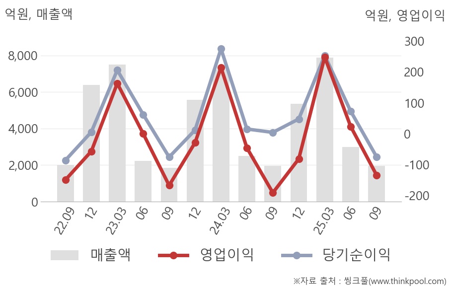 ◆ 당분기 매출액, 3년 최고 매출액(2025. 1Q) 대비 24.9% 수준