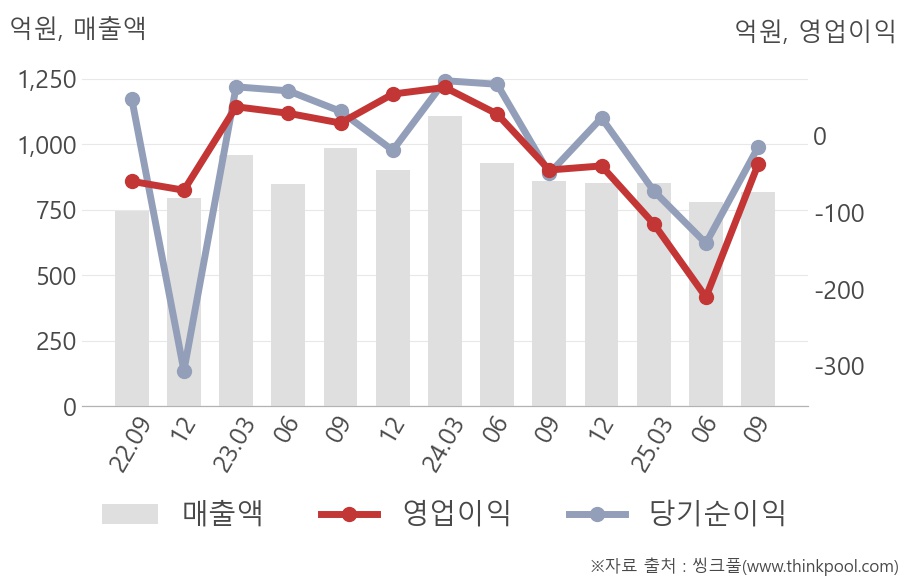 ◆ 올해 3Q 매출액 818억(-4.9%) 영업이익 -37.8억(적자지속)