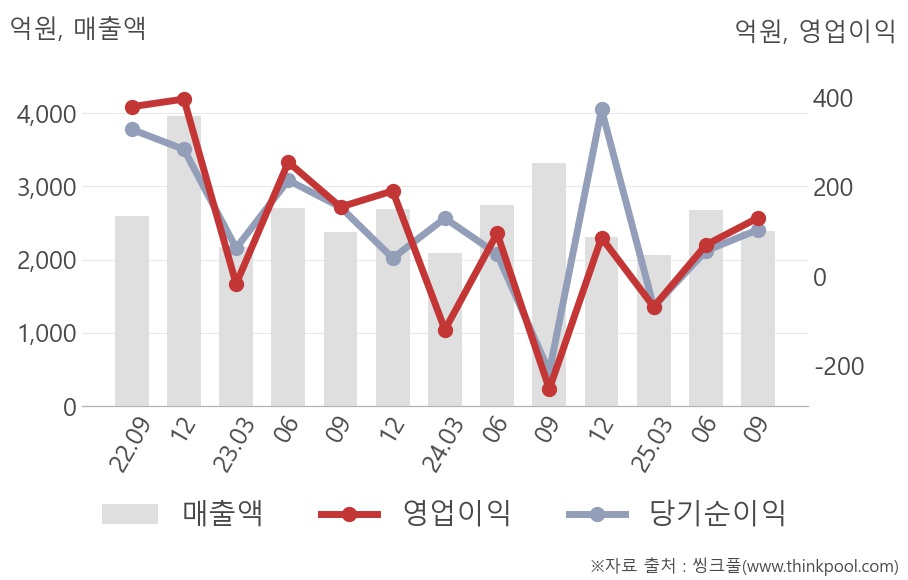 ◆ 올해 3Q 매출액 2392억(-28%) 영업이익 131억(흑자전환)