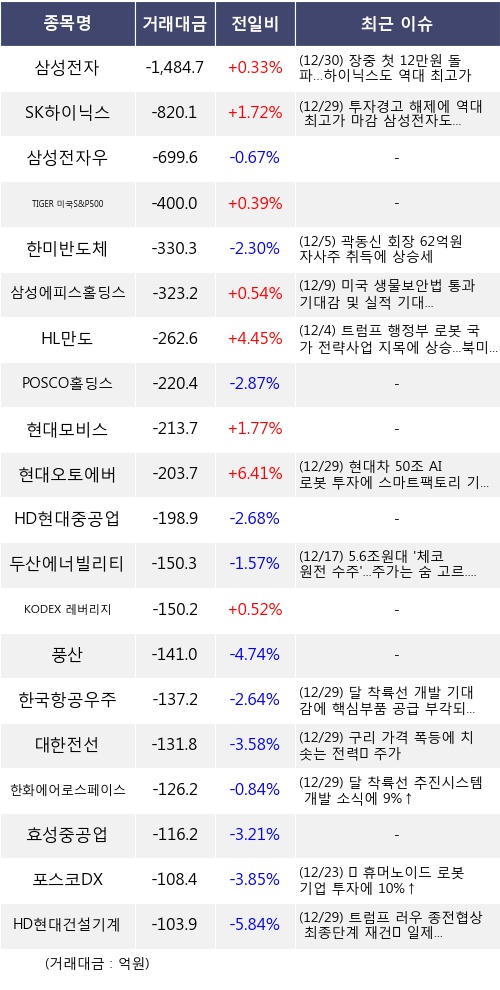 외국인 투자자는 30일 거래소에서 삼성전자, SK하이닉스, 삼성전자우 등을 중점적으로 매도한 것으로 나타났다.