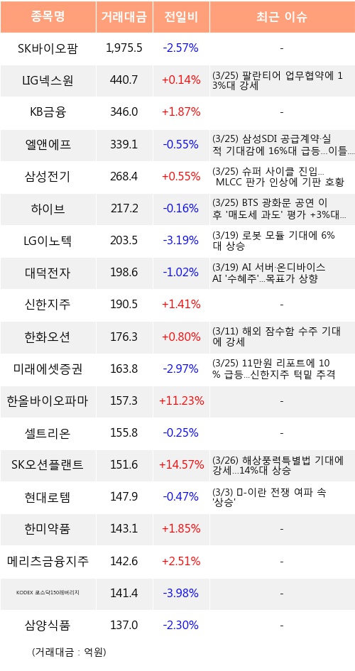 [03월26일]거래소 기관 순매수 상위 종목