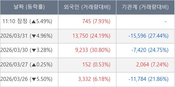 [표] 외국인ㆍ기관 순매매량 (단위 주)