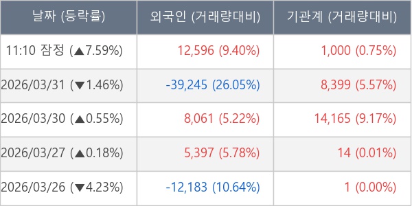 [표] 주요 기관별 순매매량 (단위 주)