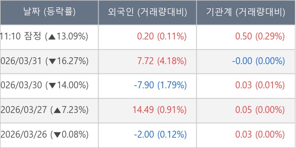 [장중수급포착] 우리넷, 외국인/기관 동시 순매수… 주가 +13.09%