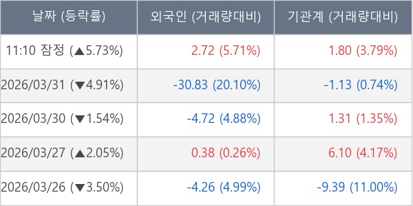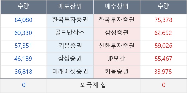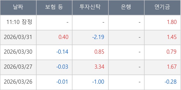 [표] 주요 기관별 순매매량 (단위 만주)