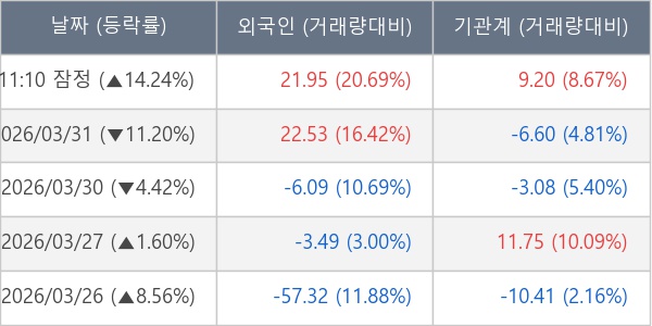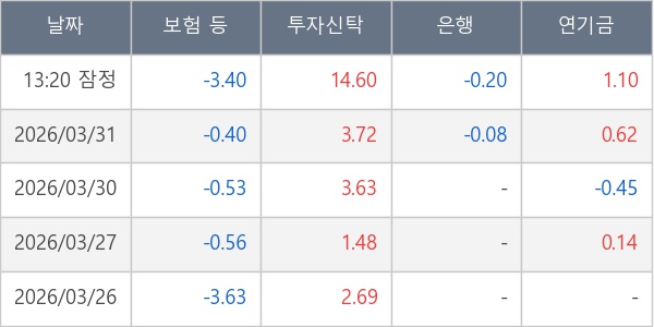 [표] 주요 기관별 순매매량 (단위 만주)