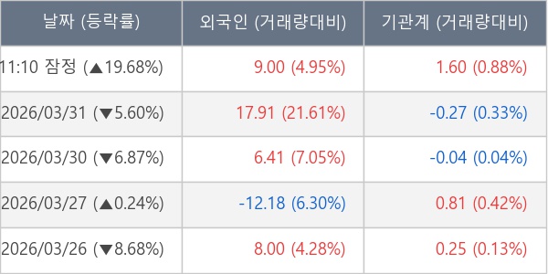[장중수급포착] 파이버프로, 외국인/기관 동시 순매수… 주가 +19.68%