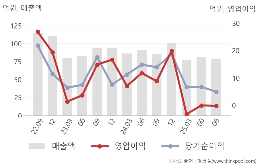 | 매출 | 79.3억 | ▼2.4% | ▼7.5% | - |