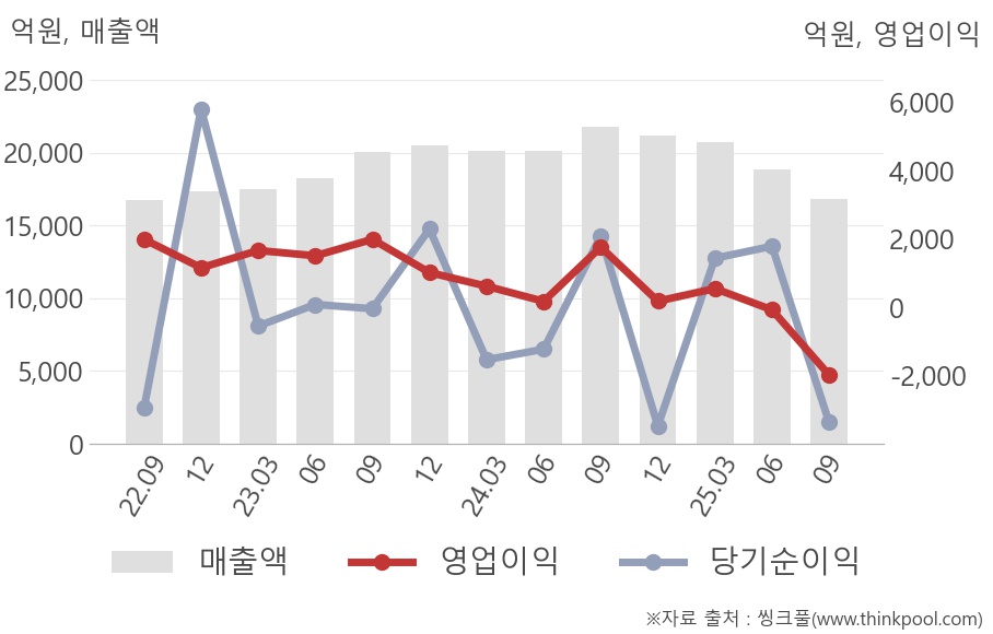 ◆ 올해 3Q 매출액 1조6812억(-23%) 영업이익 -1976억(적자전환)