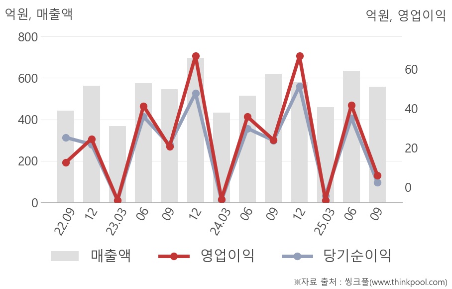 ◆ 당분기 영업이익, 3년 최고 영업이익(2023. 4Q) 대비 9.0% 수준