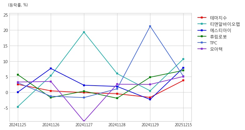 <그래프> 3D 프린터 테마 주요 종목 등락률