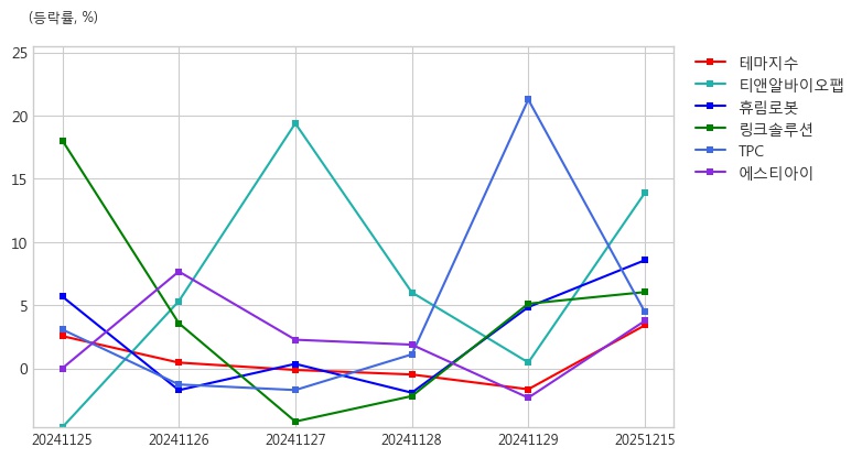 <그래프> 3D 프린터 테마 주요 종목 등락률