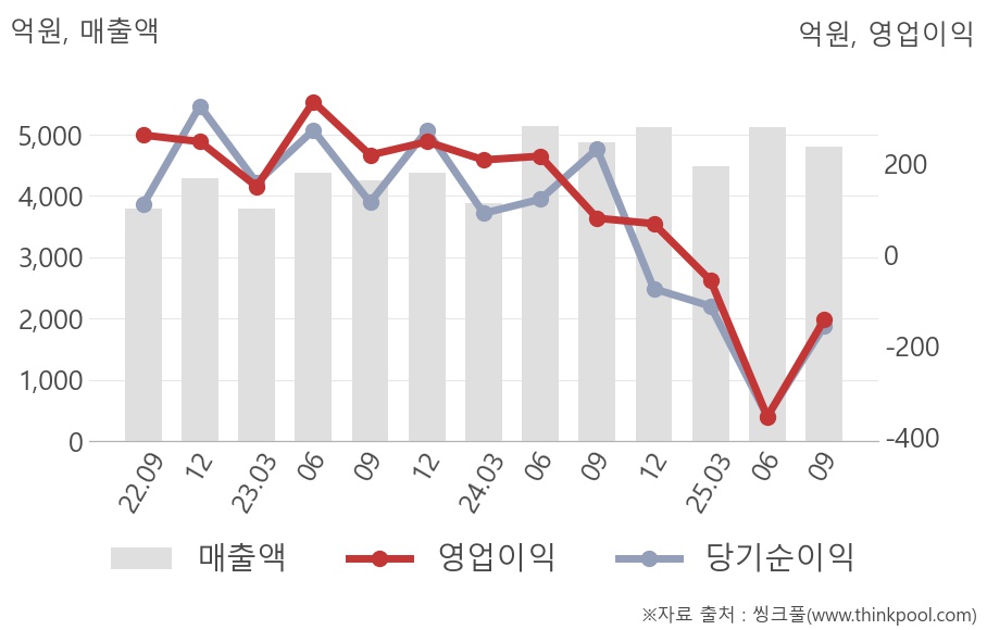 ◆ 올해 3Q 매출액 4812억(-1.3%) 영업이익 -142억(적자전환)