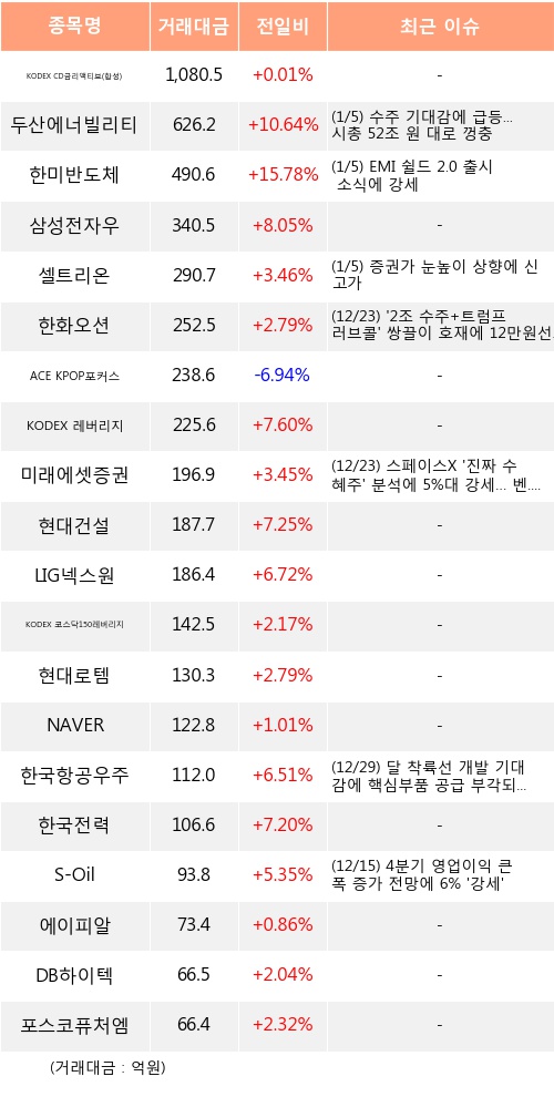 [01월05일]거래소 기관 순매수 상위 종목