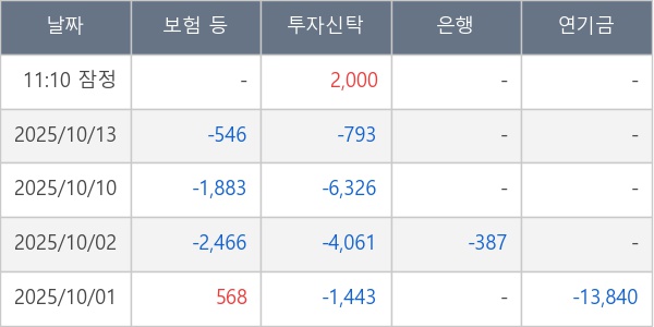 ※ 사모펀드 등 일부 기관의 순매매량은 표시되지 않음