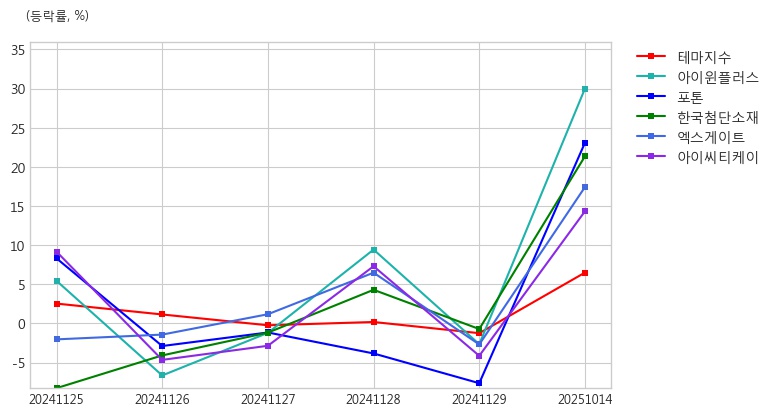 <그래프> 양자암호/양자컴퓨팅 테마 주요 종목 등락률