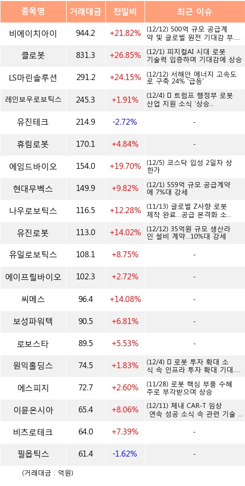 12일, 외국인 코스닥에서 비에이치아이(+21.82%), 클로봇(+26.85%) 등 순매수