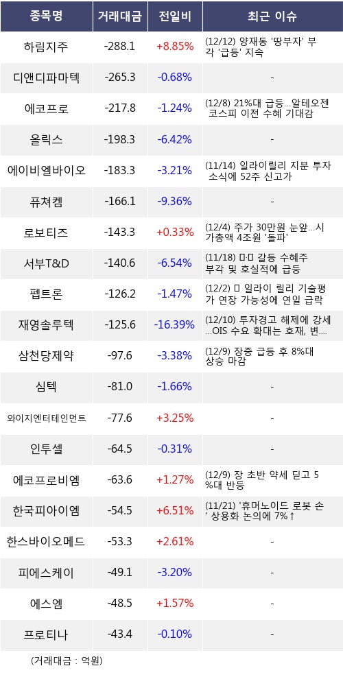 [12월12일]코스닥 외국인 순매도 상위 종목