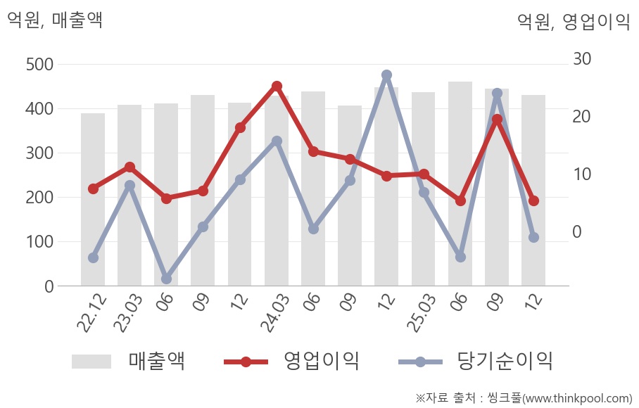 와이엠의 영업이익은 최근 3년 중 가장 저조한 실적을 기록했다. 이전에 가장 낮은 영업이익을 기록한 2025년 2분기보다도 -1.1% 줄어든 것으로 나타났다.