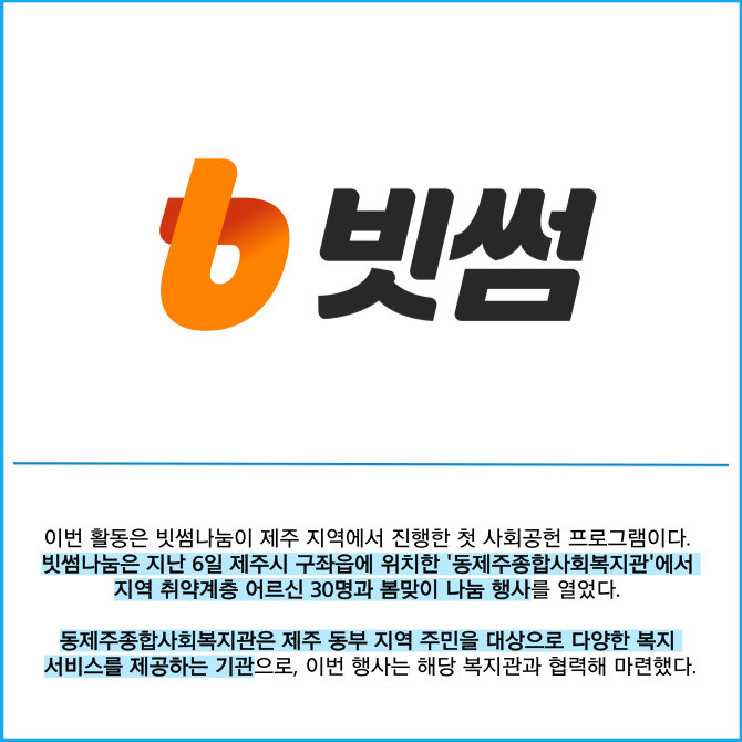 [카드] 빗썸나눔, 제주 취약계층 어르신 초청 나눔 행사 진행