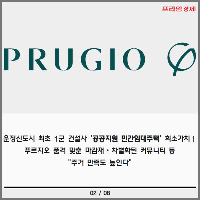 [프라임경제] 오는 11월 경기도 파주 운정신도시에 공공지원 민간임대 대우건설(047040) '운정신도시 푸르지오 더 스마트'가 모습을 드러낸다.