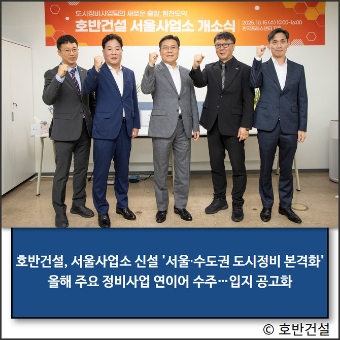 조형식 호반건설 도시정비사업팀 이사는 "서울사업소 개소를 통해 현장 인접 정보와 지역 네트워크를 기반으로 효율적인 사업 수행 체계를 구축할 계획"이라며 "사업 전문성을 한층 제고해서울과 수도권 재건축·재개발수주에 적극적으로 참여할 것"이라고 말했다.