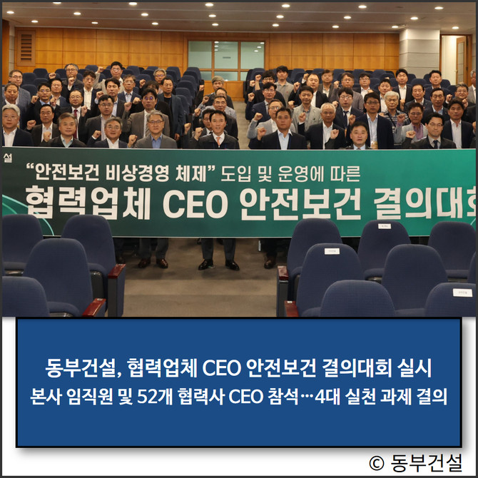 특히 동부건설은 이번 결의대회를 통해 협력사 안전 파트너십을 한층 강화한다. 아울러 현장 리더의 권한과 책임을 명확히 하는 '작업중지권 가이드'와 사고 징후 조기 포착을 위한 데이터 기반 모니터링을 단계적으로 도입한다.