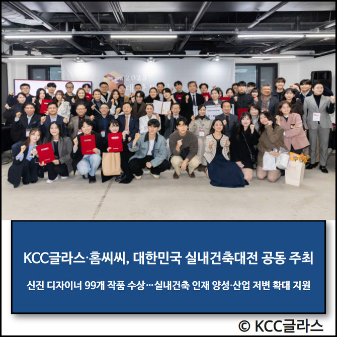 KCC글라스(344820)는 인테리어 전문 브랜드 '홈씨씨'와 사단법인 한국실내건축가협회(KOSID)가 공동 주최한 '2025 대한민국 실내건축대전' 시상식이 지난 15일 서울 용산구 노들갤러리에서 개최됐다고 17일 밝혔다.
