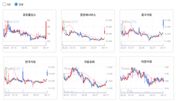 ※ [유가] 이슈 관련 종목 : 중앙에너비스, 흥구석유, 한국석유, 극동유화, 미창석유