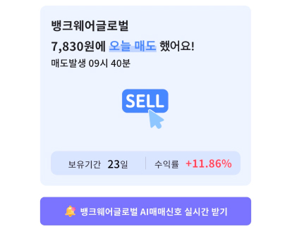 또한 개별 종목에서 나의 보유 매수가를 입력하면, 나만의 매도신호도 개별적으로 받을 수 있다.