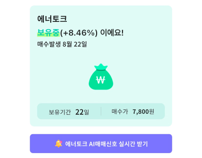 또한 개별 종목에서 나의 보유 매수가를 입력하면, 나만의 매도신호도 개별적으로 받을 수 있다.