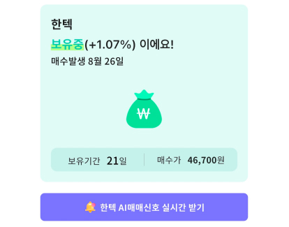 현재는 더욱 학습되어 고도화된 AI매매신호를 발생하고 있어, 이용자들의 호응이 아주 크다.