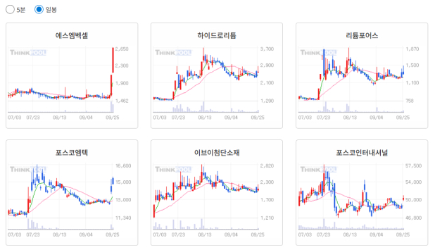 ※ [리튬] 이슈 관련 종목 : 에스엠벡셀, 하이드로리튬, 포스코엠텍, 리튬포어스, 이브이첨단소재