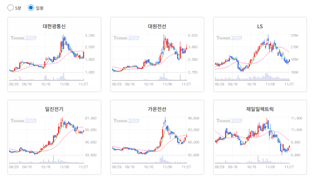 ※ [전선] 이슈 관련 종목 : 대한광통신, 대원전선, LS, 일진전기, 가온전선