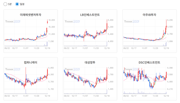 ※ [창업투자] 이슈 관련 종목 : 미래에셋벤처투자, LB인베스트먼트, 컴퍼니케이, 아주IB투자, 대성창투