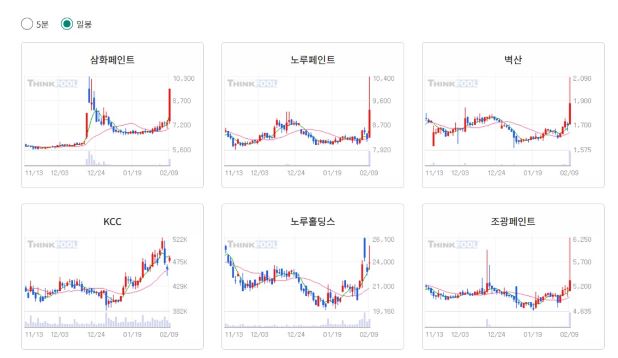 ※ [페인트] 이슈 관련 종목 : 삼화페인트, 노루페인트, 벽산, KCC, 노루홀딩스