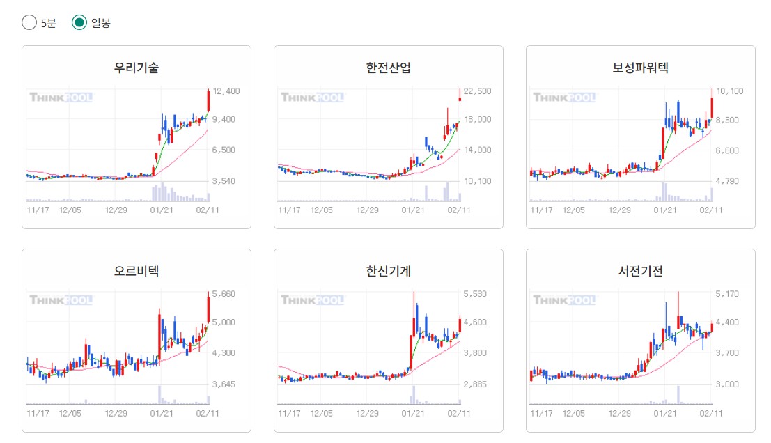 ※ [원전] 이슈 관련 종목 : 우리기술, 한전산업, 보성파워텍, 오르비텍, 한신기계