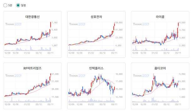 ※ [광통신] 이슈 관련 종목 : 대한광통신, 성호전자, 라이콤, RF머트리얼즈, 인텍플러스
