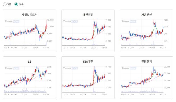 ※ [전선] 이슈 관련 종목 : 제일일렉트릭, 대원전선, 가온전선, LS, KBI메탈