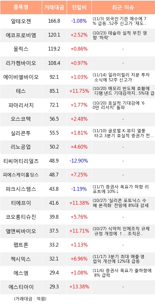 [11월17일]코스닥 기관 순매수 상위 종목