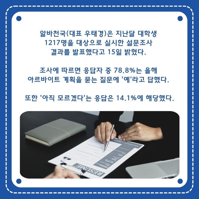[카드] 대학생 10명 중 8명 "올해 아르바이트 계획 있다"