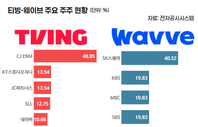 웨이브의 최대 주주는 SK스퀘어(40.52%)고 지상파 3사(KBS·MBC·SBS)가 19.83%씩 보유하고 있다.