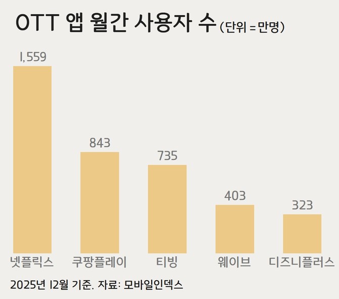 단순히 MAU를 합산했을 때 합병 기업의 이용자 수는 1100만명(중복 가입자 포함)에 달할 수 있다는 예측이 나온다. 독보적인 1위인 글로벌 OTT 넷플릭스에 맞설 토종 OTT 공룡이 탄생하게 된다.